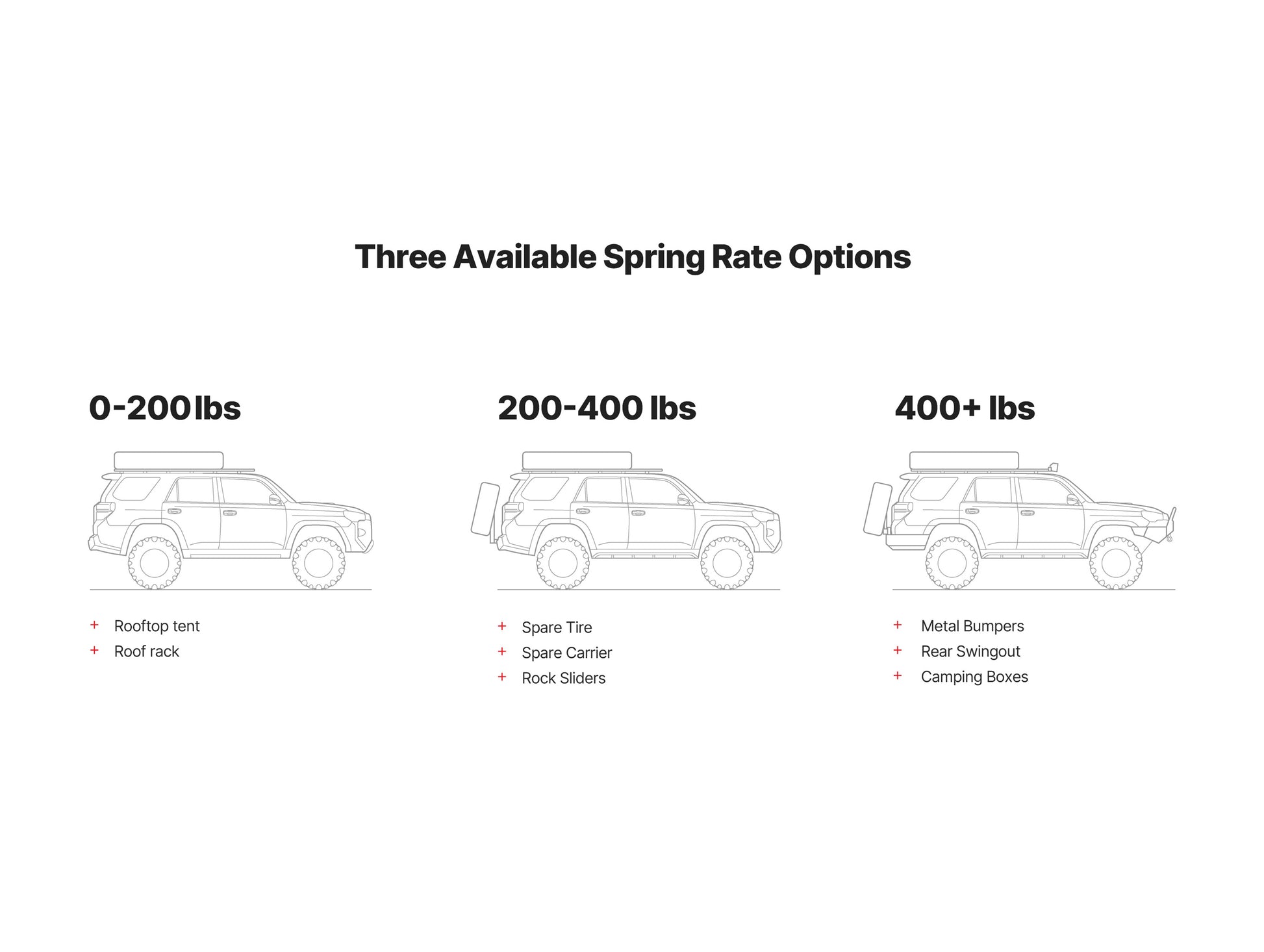 - Adjustable Threaded Spring Seat, ERO Race Springs and Bump Stops allow fine tuning of Rear Load Capacity and Ride Height